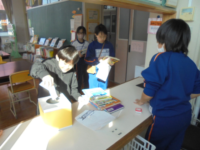 11月27日から11月28日までは,校内読書旬間を行っています。この期間は,図書委員による「読書おみくじ」「読書ビンゴ」のほかに,「縦割り読書」や「おうちで読書」「読書の木」など,子どもたちに本に親しんでもらうための様々な取組を行っています。そのため図書館も連日賑わっています。