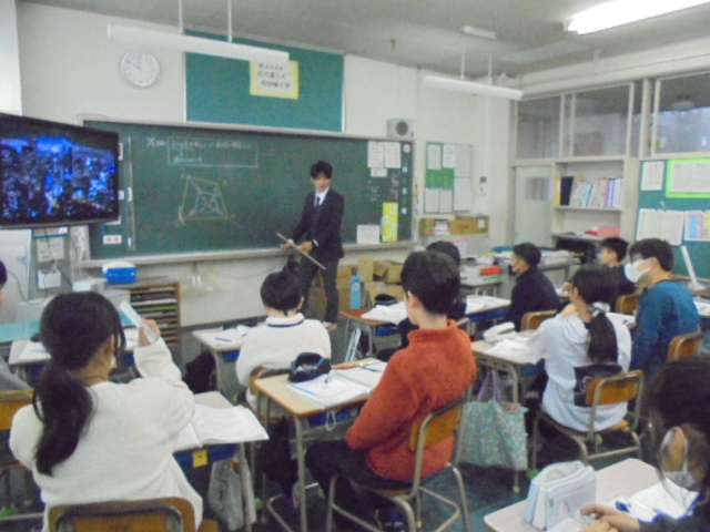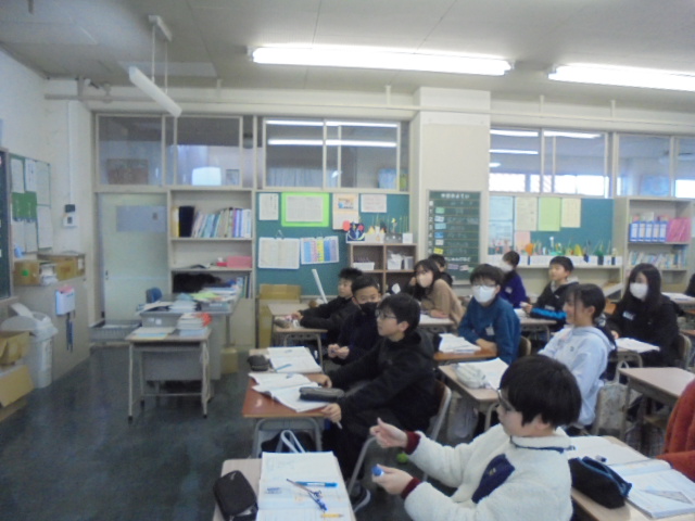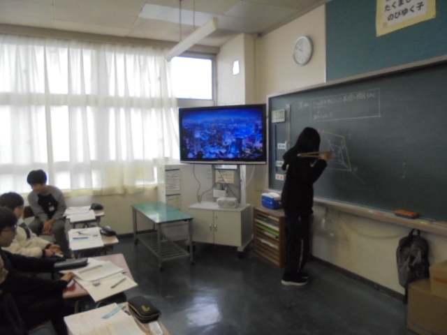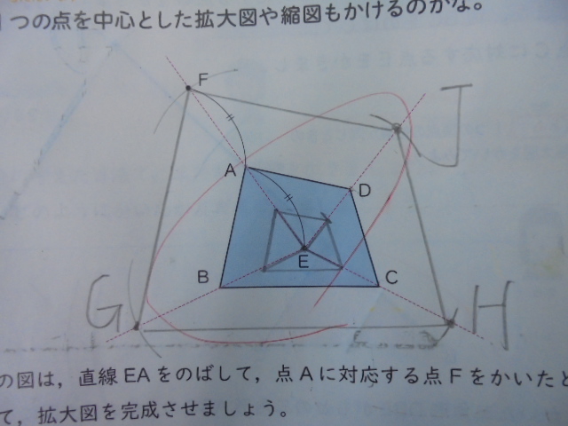 6年生は,算数で「拡大図と縮図」の学習をしています。この日は,「一つの点を中心にして拡大図や縮図をかくには,どのようにしたらよいだろうか」という学習課題に取り組んでいました。子どもたちは,これまでの学習を思い出しながら,図形の辺も倍になるので対角線も倍になると考えました。そして,一つの点から辺を倍にして拡大図や縮図をかいていました。