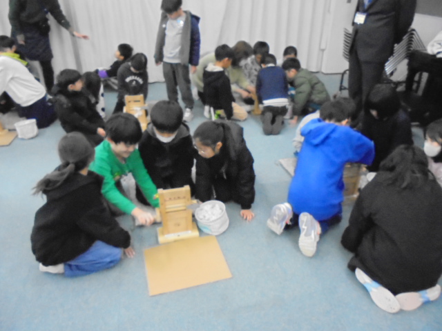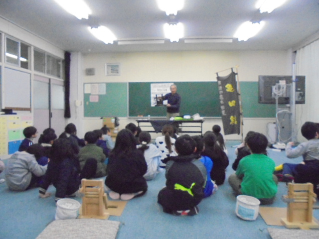 3年生が,総合的な学習の「亀田縞」の学習で,講師を招いて綿くり体験をしました。講師から「綿くり」の作業の説明を聞いた後,綿くり機を使って綿と種を分ける体験をしました。子どもたちは,綿くり機を回すと綿と種がきれいに分かれることにとても驚いていました。