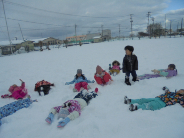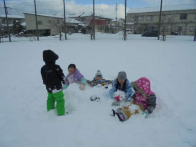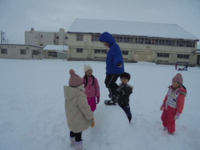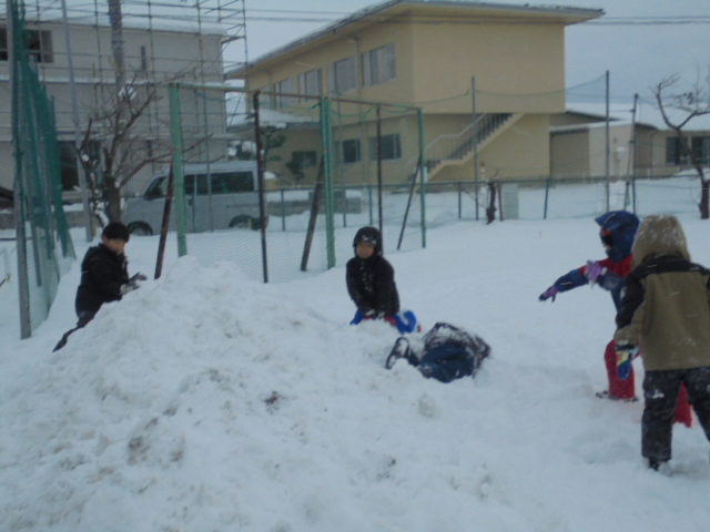 雪遊びをしました。雪だるまを作ったり,雪合戦をしたりして待望の雪遊びを満喫しました。大人にとってはやっかいな雪ですが,子どもにとってはとても楽しい遊びの一つです。