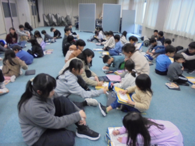 1年生は,27日に行われる卒業を祝う会に向けて,似顔絵メダル作りを始めました。自分がプレゼントする6年生の顔を見ながら,似顔絵を描きました。目や口,髪型などをよく見ながら,丁寧に似顔絵を描いていました。すてきな似顔絵メダルが完成し,卒業を祝う会当日には,6年生がメダルをかけて入場するのが楽しみです。