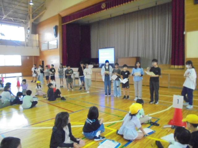 | 8日(水),17日(金)に行うひまわり遠足に向けたオリエンテーションを行いました。今年度は,ひまわり班(縦割り班)で新潟県立スポーツ公園まで歩きます。そして,公園でオリエンテーリングやひまわり班で遊びます。このオリエンテーションでは,日程や遠足のやり方を聞いた後,各班のコースやめあて,班での遊びを決めました。オリエンテーションの最後には班長が班のめあてを発表しました。「協力して頑張ろう」「楽しい思い出をつくろう」というめあてがたくさんありました。子どもたちは,今からひまわり遠足を楽しみにしていました。 | |