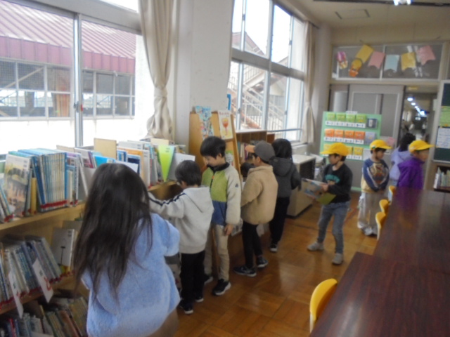 11月27日から11月28日までは,校内読書旬間を行っています。この期間は,図書委員による「読書おみくじ」「読書ビンゴ」のほかに,「縦割り読書」や「おうちで読書」「読書の木」など,子どもたちに本に親しんでもらうための様々な取組を行っています。そのため図書館も連日賑わっています。