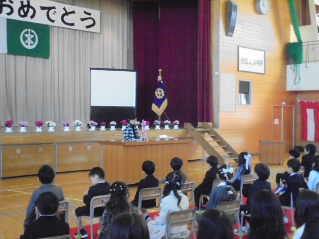9日(木),令和8年度入学式があり,ピカピカの28名の1年生が入学しました。少し緊張した表情で入場した1年生ですが,徐々に緊張もほぐれ,新入生呼名では元気な返事をしていました。また,校長から担任が紹介されると,明日から始まる学校生活をとても楽しみにしている様子でした。