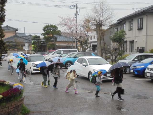本日10日(金)から授業が始まりました。あいにく雨の中の登校でしたが,上学年が下学年の面倒を見ながら安全に気を付けて登校することができました。各教室では,国語や算数,学級活動などの学習をしていました。