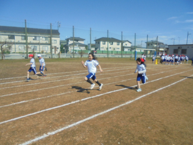 3・4年生は,新年度初めての授業で体育を行いました。グラウンドで体育の授業のやり方や並び方,集合の仕方などを確認した後,走り方の学習をしました。足の動かし方や地面の蹴り方,手の振り方などのポイントを聞いて,早速50mを走りました。春風が吹く中,どの子も気持ちよく,そして速くかっこよく走っていました。