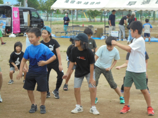 20日(土),早通小学校区コミュニティ協議会主催の早通大祭りが当校のグラウンドと体育館で行われました。3年生が総合的な学習の発展でフリーマーケットのお店を,職員が防災ワークショップのお店を,そして有志の子どもたちがダンスを披露しました。大勢の地域住民が参加し,祭りは大いに盛り上がりました。また,中学生や早小卒業生のみなさんが準備や出店を積極的に手伝っていました。いろいろな世代の人たちでつくったお祭りとなりました。