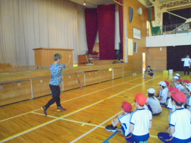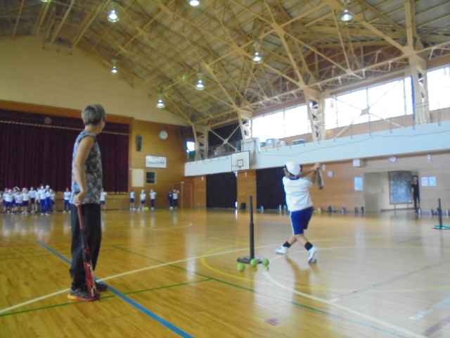 5・6年生が,新潟市アスリート派遣事業で,ソフトボール選手 河野美里 様から特別授業をしていただきました。授業のはじめには,河野選手からソフトボールを始めたきっかけや自分が興味をもったことにどんどんチャレンジしてほしいという話を聞きました。その後,ボールの投げ方や打ち方などのポイントを教えていただきました。