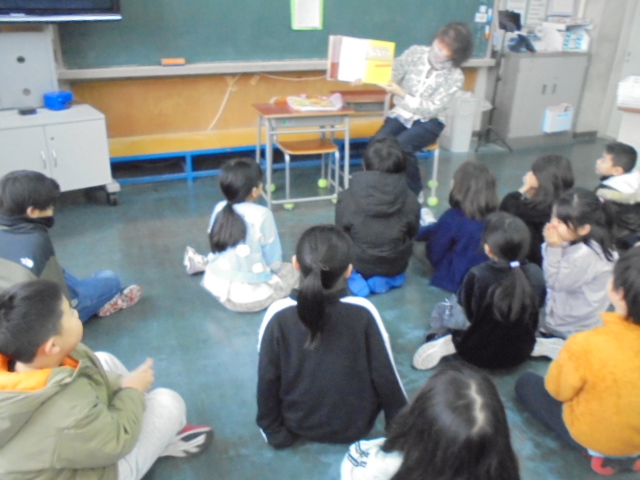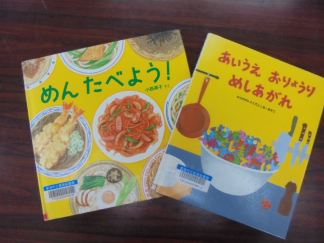 先日,今年初めてのボランティアにより読み聞かせがありました。2年生では,「めん たべよう」と「あいうえ おりょうり めしあがれ」の2冊を読んでいただきました。子どもたちは,「めんの話を聞いていたら,本当に食べたくなった」「『あいうえお』でいろいろな料理ができることが分かった」など,本の世界に没頭していました。