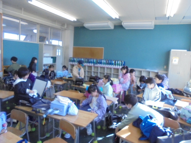 | 4月8日(水),春休みが終わって子どもたちが登校し,令和8年度の教育活動がスタートしました。新任式での9名の新任の先生紹介があった後,始業式では,校長から担任発表や次のような話(概略)がありました。 【自作のはやっぴ物語を読み聞かせして】 進級おめでとうございます。今年は,「前に踏み出す力」「考え抜く力」「チームで働く力」が付くように,みんなで考えて協力してがんばりましょう。 始業式後は学級活動を行い,担任の自己紹介をして新しい教科書を配りました。子どもたちは,新しい教科書を開いてみて,新しい学年での授業を楽しみにしていました。そして,明日は入学式。6年生が張り切って入学式の準備をしていました。 |